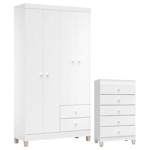 Cômoda Gaveteiro e Guarda Roupa 4 Portas Baby Kids Branco Incorplac