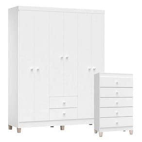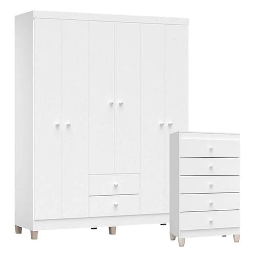 Cômoda Gaveteiro e Guarda Roupa 6 Portas Baby Kids Branco Brilho – Incorplac