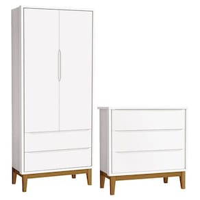 Cômoda Gaveteiro e Guarda Roupa Infantil 2 Portas New Classic Branco com Pés Madeira – Reller