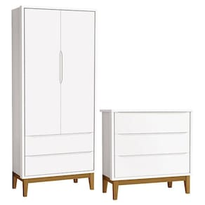 Cômoda Gaveteiro e Guarda Roupa Infantil 2 Portas New Classic Branco com Pés Madeira Reller