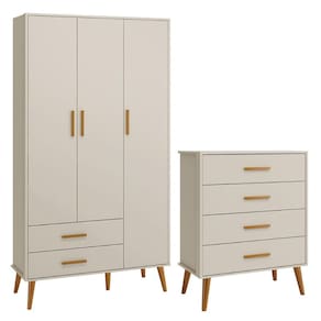 Com design retrô e pés em madeira, é funcional e seguro, oferecendo cabideiro metálico, sistema antitombamento e amplo espaço de armazenamento.