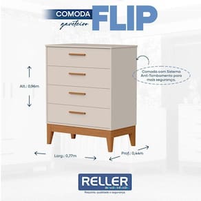 Cômoda Gaveteiro Infantil Flip Areia Acetinado - Reller