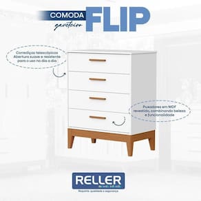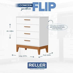A Cômoda Gaveteiro Infantil Flip é a escolha perfeita para organizar o quartinho com praticidade e charme. Seu design moderno em branco acetinado combina facilmente com qualquer decoração, trazendo leveza e sofisticação ao ambiente.Equipada com 4 gavetas espaçosas, oferece amplo espaço para roupas, acessórios e itens do bebê ou da criança, mantendo tudo sempre à mão. As corrediças telescópicas garantem abertura suave e silenciosa, proporcionando maior durabilidade no dia a dia. Desenvolvido pela Reller com toda qualidade e modernidade então aproveite e adquire ja o seu.
