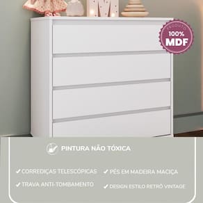 4 gavetas amplas, ideais para roupas, fraldas e acessórios.