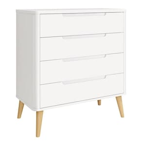 Cômoda Gaveteiro Infantil Retrô Boom Branco com Pés Madeira Natural - Reller