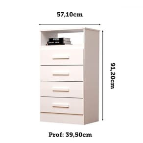 O(a) Cômoda Gaveteiro Jéssica 4 Gavetas 100% Mdf Branco - Acp Móveis é produzido em 100% MDF e MDF na escala de brilho Ajustar, e possui um grau de dificuldade de montagem: Médio.