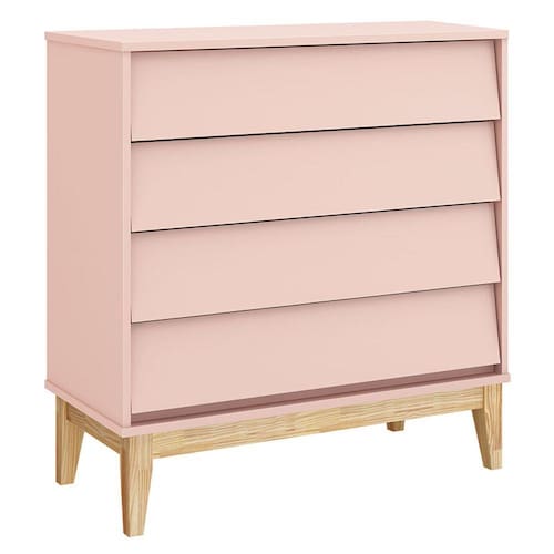 Cômoda Gaveteiro Noah Rosa com Pés Madeira Natural - Reller