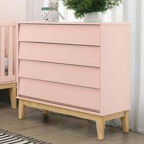 Cômoda Gaveteiro Noah Rosa com Pés Madeira Natural - Reller