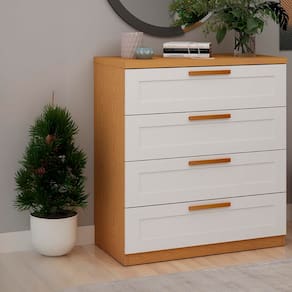 Praticidade e elegância para seu ambiente A Cômoda Genialflex Madri é a escolha ideal para quem busca combinar praticidade e estilo. Com 4 gavetas e acabamento em cinamomo branco fosco, ela traz um design moderno e clean que se encaixa perfeitamente em diferentes estilos de decoração. Fabricada 100% em MDF, oferece alta resistência e durabilidade, tornando-se uma peça versátil para o seu quarto, hall de entrada ou sala de estar.