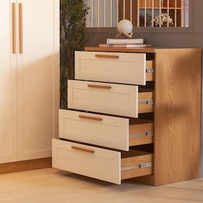 Capacidade de armazenamento com toque sofisticado Com 4 gavetas espaçosas, a Cômoda Madri proporciona excelente capacidade de armazenamento para roupas, acessórios e outros itens pessoais. As frentes provençais em MDF BP conferem um visual elegante, enquanto as corrediças telescópicas garantem um deslizamento suave e silencioso. Ideal para quem precisa de organização sem abrir mão do estilo, essa cômoda é a peça chave para otimizar o espaço com sofisticação.