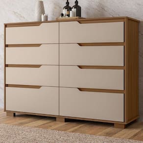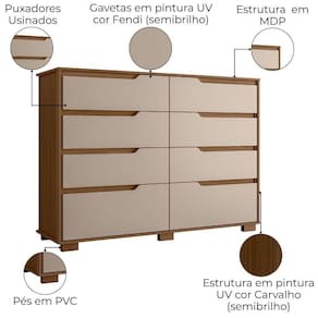A Cômoda Georgia alia funcionalidade e design moderno para organizar seu ambiente com estilo. Estrutura em MDP (gavetas e tampo 15 mm / base e fundo 12 mm) com acabamento em pintura UV. Conta com 8 gavetas (sendo 2 gavetões) equipadas com corrediças metálicas, puxadores em cava e pés em PVC. Possui sistema de montagem flexível, permitindo instalar as gavetas em duas posições diferentes conforme a necessidade. Este produto será entregue em 02 volumes.