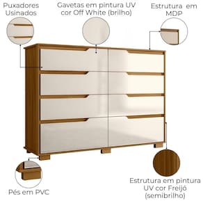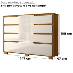 A Cômoda Georgia alia funcionalidade e design moderno para organizar seu ambiente com estilo. Estrutura em MDP (gavetas e tampo 15 mm / base e fundo 12 mm) com acabamento em pintura UV. Conta com 8 gavetas (sendo 2 gavetões) equipadas com corrediças metálicas, puxadores em cava e pés em PVC. Possui sistema de montagem flexível, permitindo instalar as gavetas em duas posições diferentes conforme a necessidade. Este produto será entregue em 02 volumes.