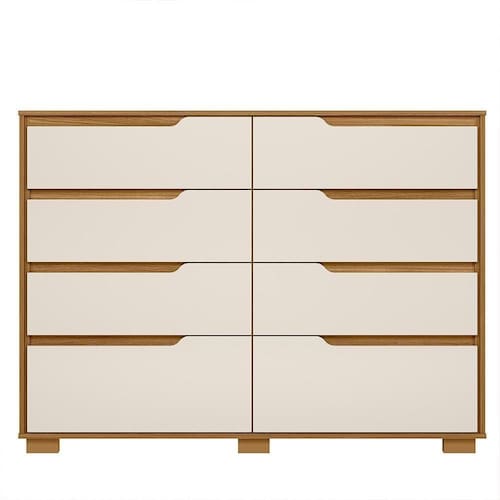 Cômoda Georgia 8 Gavetas Freijó/off White - Moval Freijó/off White Cômoda Georgia 8 Gavetas - Moval Renove o seu espaço com a Cômoda Georgia de 8 Gavetas. Com estrutura em MDP e pintura UV, esta cômoda oferece durabilidade e um acabamento impecável. Suas 8 gavetas com corrediças telescópicas garantem um deslizamento suave, e os puxadores usinados proporcionam um toque de elegância. Com amplo espaço interno e pés em PVC, a Cômoda Georgia é a escolha perfeita para organizar seu ambiente com estilo e praticidade. ESPECIFICAÇÕES: - Estrutura em MDP - Pintura UV - 8 Gavetas - Corrediças telescópicas - Gavetas com puxadores usinados - Amplo espaço interno - Pés em PVC