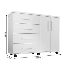 Cômoda Geval Encanto Com 04 Gavetas 02 Portas E Rodízios - Branco - Cor: Branco