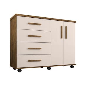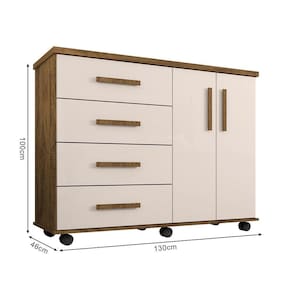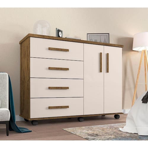 Cômoda Geval Encanto Com 04 Gavetas 02 Portas E Rodízios - Canela/off White - Cor: Marrom