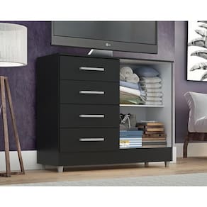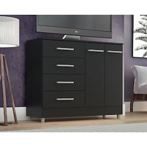 4 gavetas com corrediças metálicas 2 Portas com dobradiças metálicas. Puxadores em PVC para facilitar a abertura e fechamento. Suporta até 7kg em suas gavetas e 20kg no tampo. Fabricado em MDP de 12mm e15mm. Acabamento Touch Alto-Relevo ou Alto Brilho UV e Semibrilho parte interna. Pés inclusos. Acompanha manual de montagem.