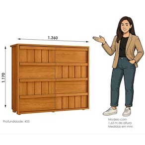A Cômoda Talita é produzida com material 100% MDF e acabamento em pintura UV, garantindo durabilidade e resistência ao desgaste do dia a dia. Com 8 gavetas espaçosas, cada uma equipada com corrediças telescópicas para um deslizamento suave e silencioso, oferece amplo espaço para organização. Os puxadores em MDF estilo “cava” são funcionais e acompanham o design ripado do móvel, proporcionando um toque moderno e sofisticado. A estrutura conta com moldura envoltória de MDF de 25mm, 6 pés em poliestireno de 50mm que elevam a peça facilitando a limpeza, e o sistema de montagem Girofix que assegura praticidade e firmeza na instalação.