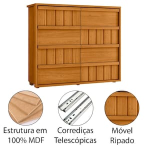 Dimensões da Cômoda de Quarto em MDF Ripada 8 Gavetas 6 Pés: