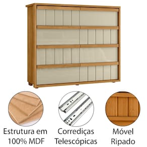 A Cômoda Talita é produzida com material 100% MDF e acabamento em pintura UV, garantindo durabilidade e resistência ao desgaste do dia a dia. Com 8 gavetas espaçosas, cada uma equipada com corrediças telescópicas para um deslizamento suave e silencioso, oferece amplo espaço para organização. Os puxadores em MDF estilo “cava” são funcionais e acompanham o design ripado do móvel, proporcionando um toque moderno e sofisticado. A estrutura conta com moldura envoltória de MDF de 25mm, 6 pés em poliestireno de 50mm que elevam a peça facilitando a limpeza, e o sistema de montagem Girofix que assegura praticidade e firmeza na instalação.