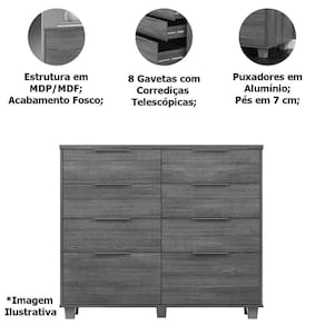 Dimensões da Cômoda Grande MDP/MDF 8 Gavetas Density: