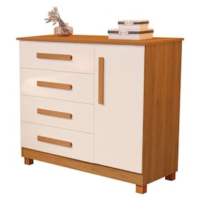 Seu design inteligente conta com 4 gavetas espaçosas e 1 porta com prateleira interna, que funciona como uma sapateira prática ou espaço extra para guardar roupas, acessórios, itens pessoais ou o que mais você precisar.