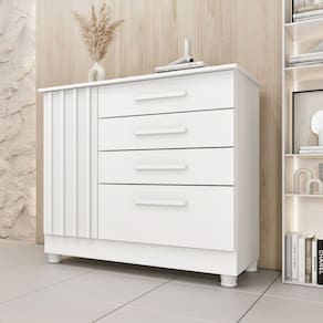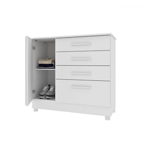 O(a) Cômoda Guarani 1 Porta 4 Gavetas Ripado 31299 Neve - Tcil Móveis é produzido em MDP na escala de brilho Fosco, e possui um grau de dificuldade de montagem: Médio.