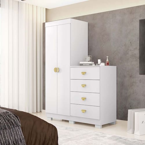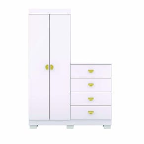 Cômoda Guarda-Roupa 4 Gavetas 2 Portas Cristal Branco - Vila Rica