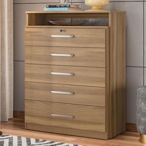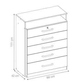 Dispõe de 5 gavetas, com profundidade excelente para acomodar todas as suas roupas, sendo a última um pouco mais profunda que as demais.