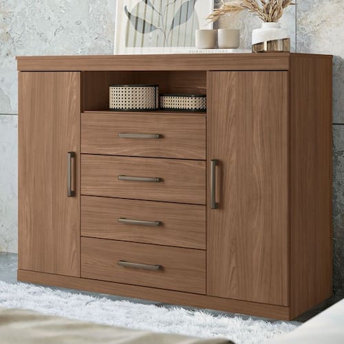 O(a) Cômoda Havana Master 2 Portas 4 Gavetas Jatoba - Santos Andirá é produzido em MDP e HDF na escala de brilho Brilhante, e possui um grau de dificuldade de montagem: Médio.