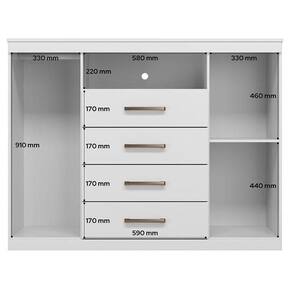 Comoda Havana Master Branco: A Cômoda Havana Master é espaço e funcionalidade para seu quarto: duas portas (uma com cabideiro), quatro gavetas espaçosas e tampo. Pés elevam o móvel facilitando a limpeza e o acabamento traz um toque elegante ao ambiente.