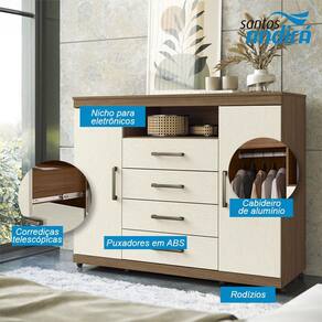 Comoda Havana Master com rodizio Jatobá Areia - Santos Andirá