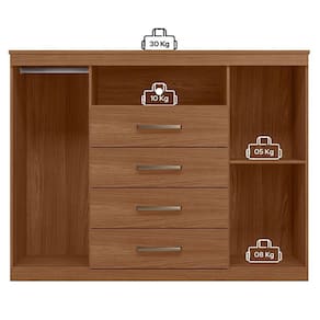 Comoda Havana Master Jatobá: A Cômoda Havana Master é espaço e funcionalidade para seu quarto: duas portas (uma com cabideiro), quatro gavetas espaçosas e tampo. Pés elevam o móvel facilitando a limpeza e o acabamento traz um toque elegante ao ambiente.