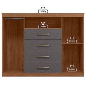 Comoda Havana Master Jatobá Grafite: A Cômoda Havana Master é espaço e funcionalidade para seu quarto: duas portas (uma com cabideiro), quatro gavetas espaçosas e tampo. Pés elevam o móvel facilitando a limpeza e o acabamento traz um toque elegante ao ambiente.