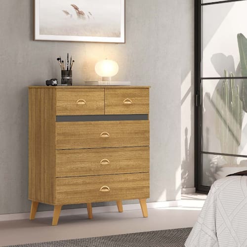 Cômoda 5 Gavetas Ibiza Nature/Alaska - Vila Rica