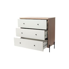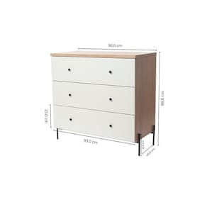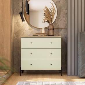 A Cômoda Ilium possui design contemporâneo e é o móvel ideal para decorar seu quarto, sem deixar de lado a funcionalidade. Este móvel é fabricado em chapa revestida em BP, um acabamento que confere a beleza no amadeirado natural e toque aveludado com mais durabilidade e resistência. Conta com três gavetas com corrediças telescópicas para organizar suas roupas e acessórios, já o tampo serve de apoio para decorações e acessórios. O seu puxador em metal com acabamento Soft touch combina com os pés em metal, tornando este móvel moderno que irá compor seu quarto.