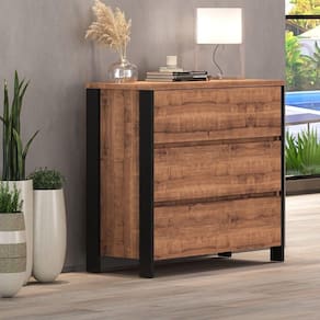 Com design moderno e minimalista a Cômoda Industrial é ideal para otimizar o espaço do seu dormitório. Agrega resistência e beleza, ajudando a organizar suas vestimentas, acessórios e itens decorativos. É produzida 100% em BP, excelente padrão de acabamento nas cores Preto Fosco com Solanum, que aumenta a durabilidade do móvel e possui maior resistência a riscos e a umidade. Seu sistema de montagem prático e descomplicado, realizado através de parafusos, minifix e cavilhas. Possui tampo de 25mm, estrutura de 15mm, pés de 18mm e fundo de 06mm. Corrediças telescópicas. Medidas montado (A x L x P): 91 x 90 x 45 cm. Perfeito para diversos ambientes, agrega conforto, sofisticação e estilo à sua decoração. Aproveite! Acabamento da Gaveta: BP Acabamento dos Pés: BP Altura dos Pés: 88,5 cm Ambiente Principal: Quarto Complexidade da Montagem: Baixa: pode ser montado por uma pessoa sozinha Cor: Preto/Solanum Cor do Produto: Preto/Solanum Cor Interna: Preto/Solanum Escala de Brilho: Fosco Escala de Brilho da Gaveta: Fosco Gaveta com Chave: Não Itens Inclusos: 1 Cômoda, Kit Ferragens e Manual de Montagem Manual de Montagem e Instalação: https://cdn2.madeiramadeira.com.br/atributo/moveis-foscarini/916020-m123-comoda-3-gavetas.pdf Material da Gaveta: MDP Material do Fundo: MDF Material dos Pés: MDF Material Principal: MDF/MDP Necessita Montagem: Sim Origem do Produto: Nacional Pés Reguláveis: Não Peso: 41 kg Peso Máximo por Gaveta: 10 kg Possui Espelho: Não Possui Nichos: Não Possui Pés: 04 Possui Portas: Não Possui Prateleiras: Não Possui Rodízio: Não Recomendações de Uso, Manutenção e Limpeza: Limpar com flanela ou pano macio seco, não utilizar produtos abrasivos, desengordurantes, álcool ou solvente. Não expor o produto diretamente à luz solar e à umidade. Sapatas Niveladoras: Não Sistema de Montagem: Parafusos, minifix e cavilhas. Suporta Até (kg): 45 kg Tamanho: Tipo de Corrediça da Gaveta: Metálica Telescópica Tipo de Puxador da Gaveta: Embutido