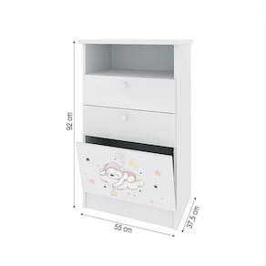 Cômoda Infantil 1 Porta 2 Gavetas 1 Nicho Estampada Kids Espresso Móveis Branco/Urso Rosa. Cômoda infantil kids possui pintura UV, impressão digital com desenho de um lindo ursinho rosa, 1 porta basculante com dobradiça de pressão e freio limitador, 2 gavetas com corrediças metálicas e puxadores em PVC. Seu esquema de montagem é pratico e fácil. Ean: 7908439696142