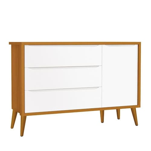 Cômoda Infantil 1 Porta E 3 Gavetas Theo Retrô Branco/savana Com Pés Amadeirado - Reller Móveis Branco/savana