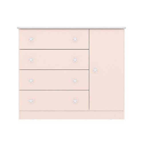 ESPECIFICAÇÕES: Estrutura em MDP Pintura UV atóxica 1 Porta 4 Gavetas Corrediças metálicas Puxadores em forma de estrela 1 Prateleira interna Sistema antitombamento Maior organização e praticidade