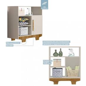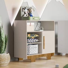 A Cômoda Flocos é uma peça charmosa e funcional para o quarto infantil, ideal para organizar e decorar o ambiente. Ela possui 3 prateleiras que facilitam a organização de acessórios e sapatinhos, e um tampo para itens decorativos como enfeites e abajures. Sua estrutura em MDF com acabamento em pintura UV.