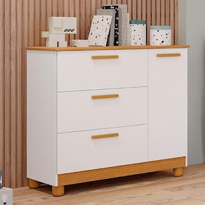 Que tal a Cômoda Jujuba?O quarto onde seu filho vai crescer e aprender coisas novas todos os dias merece ter uma mobília com bom gosto e charme impecáveis, né? A Cômoda Jujuba é daquele tipo de peça que, além de ajudar na organização da rotina, ainda deixa o ambiente muito mais agradável e com uma decoração leve - a estrutura oferece compartimentos para as roupinhas, sapatos e brinquedos, enquanto a cor da estrutura oferece característica versátil que permite combinação com outros tons e padrões de estampa. Daí é só comprar um leito aconchegante e deixar o espaço do jeitinho que essa pessoa tão importante merece! Marca: Modern