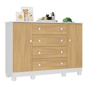 Diferenciais: - 3 anos de garantia contra defeitos de fabricação e material. - Produzida em madeira de reflorestamento (MDP 12/15mm) com acabamento acetinado (cerca de 20% de brilho): sustentabilidade e durabilidade. - 2 portas e 4 gavetas: amplo espaço interno para organizar roupinhas e acessórios. - Corrediças telescópicas: permitem a abertura total e o manuseio silencioso das gavetas. - Cabideiro em alumínio: acomoda as roupas para que não amassem. - Puxadores em ABS redondos e práticos. - Pés em polipropileno e rodapé: estabilidade e visual elegante. - Sistema antitombamento: proporciona segurança para o bebê e tranquilidade aos pais.