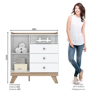 Cômoda Infantil 3 Gavetas 1 Porta Retrô Theo Espresso Móveis Branco/Jequitibá HP