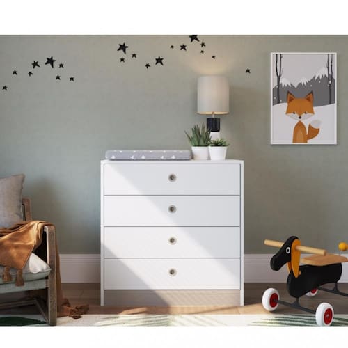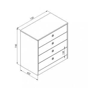Características: Estrutura MDP 1 Porta 4 Gavetas Sistema anti-tomabmento Espelho 45 x 30cm