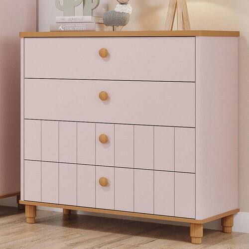 A Comoda Infantil 4 Gavetas com Pes em MDF Livia Permobili e perfeita para encantar o quarto do seu pequeno. Feita em MDF com pintura UV, ela e duravel e charmosa. Suas quatro gavetas espacosas com corredicas telescopicas facilitam a organizacao. Os puxadores de madeira macica e os cantos arredondados, assim como os pes torneados, agregam delicadeza e estabilidade. Cada gaveta suporta ate 3 kg, ideal para roupas, brinquedos e mais. Transforme o cantinho do seu filho com a Comoda Infantil Livia 4 Gavetas.