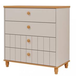 A Comoda Infantil 4 Gavetas com Pes em MDF Livia Permobili e perfeita para encantar o quarto do seu pequeno. Feita em MDF com pintura UV, ela e duravel e charmosa. Suas quatro gavetas espacosas com corredicas telescopicas facilitam a organizacao. Os puxadores de madeira macica e os cantos arredondados, assim como os pes torneados, agregam delicadeza e estabilidade. Cada gaveta suporta ate 3 kg, ideal para roupas, brinquedos e mais. Transforme o cantinho do seu filho com a Comoda Infantil Livia 4 Gavetas.