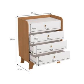 Conheça a Cômoda 4 gavetas T403 da Linha de Dormitório Infantil Kappesberg. Em MDP de 1,5cm, para maior resistência e durabilidade, com 1m de altura, 81cm de largura e 47cm de profundidade, o destaque são os acabamentos usinados nas laterais e pés. Com caixaria em pintura na cor canela e acabamento touch, as portas são na cor branco brilho. Uma combinação linda e moderna. São quatro gavetas e o máximo de espaço, facilitando a organização de roupas dobradas, calçados, produtos de higiene e outros itens. Multifuncional, a cômoda ainda pode ser utilizada como trocador. Para completar, a porta conta com sistema de amortecimento e as gavetas, com corrediças telescópicas, para mais sustentação e durabilidade. E os puxadores dourados completam o estilo e a beleza do produto. Produto Montado: Sim Acabamento da Gaveta: Pintura Acabamento dos Pés: Pintura Altura dos Pés: 17 cm Altura Máxima dos Pés: 17.0000 Ambiente Principal: Quarto Infantil codigo_ean: 7900288326218 Complexidade da Montagem: Média: pode ser montado por mais de uma pessoa e/ou necessite de maior conhecimento para montagem Cor: Canela/Branco Cor do Produto: Canela/Branco Escala de Brilho: Semi-Brilho Escala de Brilho da Gaveta: Semi-Brilho Gaveta com Chave: Não Itens Inclusos: 1 Cômoda, Manual de Montagem e Ferragens Linha ou Coleção: Linha Infantil 2026 Manual de Montagem e Instalação: https://product-hub-prd.madeiramadeira.com.br/647855707/documents/ab111bbc-e5ee-475c-b3d4-6133e13a6c4c338123554451770404527475.pdf Marca: Kappesberg Material da Gaveta: MDP Material do Fundo: MDF Material do Puxador da Gaveta: Plástico Material dos Pés: MDP Material Principal: MDP modular: Não Necessita Montagem: Sim Origem do Produto: Nacional Pés Reguláveis: Não Peso: 34,9926 kg Peso Máximo por Gaveta: 6 kg Possui Espelho: Não Possui Nichos: Não Possui Pés: 02 Possui Portas: Não Possui Prateleiras: Não Possui Rodízio: Não Quantidade de Gavetas: 04 Gavetas Recomendações de Uso, Manutenção e Limpeza: Use um pano limpo e ligeiramente umedecido em água ou álcool (recomendamos álcool etílico hidratado). Logo após, seque a superfície com um pano seco e macio. Em grandes superfícies limpe pequenas áreas de cada vez, trabalhando de baixo para cima. Sapatas Niveladoras: Não Sistema de Montagem: Parafuso Philips e Minifix Suporta Até (kg): 25 kg Tipo de Cômoda: Infantil Tipo de Corrediça da Gaveta: Metálica Telescópica Tipo de Puxador da Gaveta: Externo