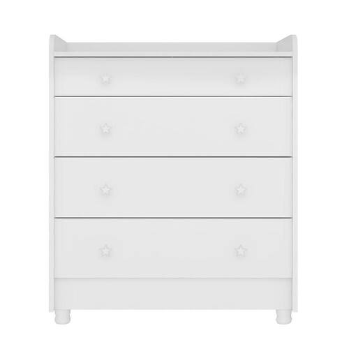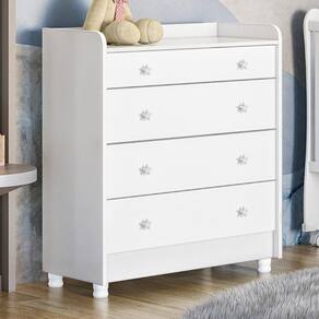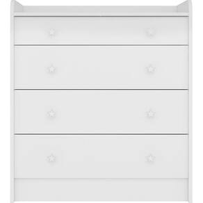 Cômoda Infantil 4 Gavetas Doce Sonho Branco Com Trocador E Pés - Qmovi Branco Cômoda Infantil 4 Gavetas Doce Sonho com Trocador e Pés - Qmovi A Cômoda Doce Sonho é o produto ideal para quem precisa de muita funcionalidade em pouco espaço. Ela possui 4 amplas gavetas e um trocador, garantindo conforto e praticidade na rotina diária com o bebê. Seus puxadores em forma de estrela garantem um ambiente mais divertido e charmoso. ESPECIFICAÇÕES: - Estrutura em MDP - Pintura UV atóxica - 4 Gavetas - Corrediças metálicas - Puxadores em forma de estrela - Trocador embutido - Sistema antitombamento - Maior organização e praticidade - Pés em PVC - Não acompanha colchonete