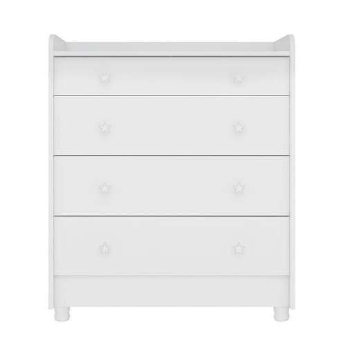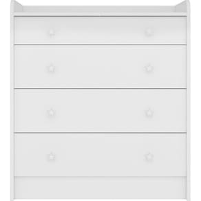 A Cômoda Doce Sonho é o produto ideal para quem precisa de muita funcionalidade em pouco espaço. Ela possui 4 amplas gavetas e um trocador, garantindo conforto e praticidade na rotina diária com o bebê. Seus puxadores em forma de estrela garantem um ambiente mais divertido e charmoso.