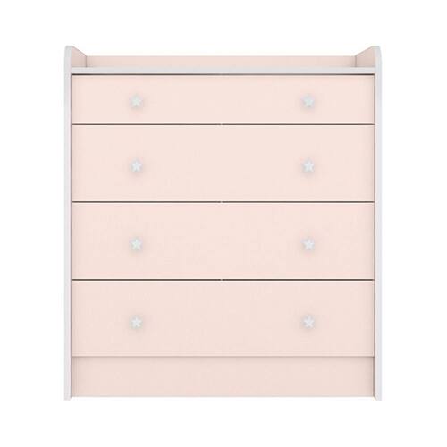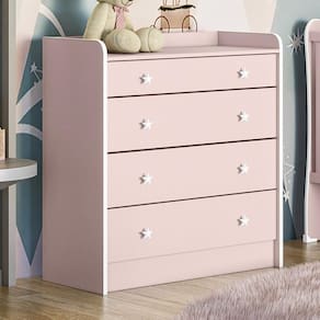 ESPECIFICAÇÕES: Estrutura em MDP Pintura UV atóxica 4 Gavetas Corrediças metálicas Puxadores em forma de estrela Trocador embutido Sistema antitombamento Maior organização e praticidade Não acompanha colchonete